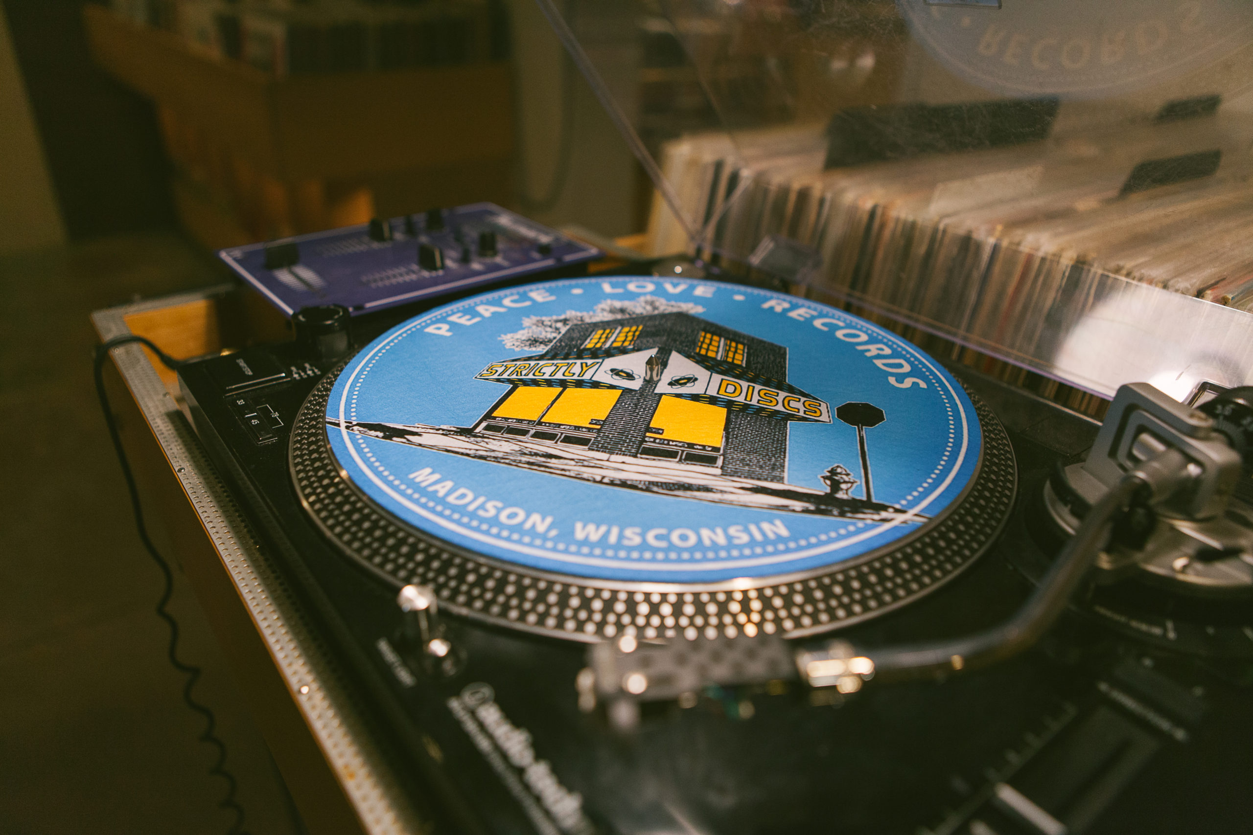 Strictly Discs has been a mainstay of Madison since its inception in 1987. Snugly tucked into a corner at the cross streets of Monroe and Harrison, the shop has seen its fair share of change, whether it be in the neighborhood and music industry or the world and our society as a whole. Throughout it all they’ve quietly strived to be a bastion of good beats and eloquent vibes, and more importantly built and maintained a strong commitment to the local community. But what is it that weaves a local music shop into the fabric of a city? What magic formula regularly brings back droves of music-loving Madisonians? The answer is more simple than you may think, so we’ll let you in on a well-known secret: a combination of a great selection of music and even better people. Two of those people, Evan Woodward and Angie Roloff, have been part of Strictly’s team for over a decade and have borne witness to the shift from digital to vinyl and how by staying close to their local community, they’ve been able to not just see their way through a global pandemic, but come out flourishing in the end.